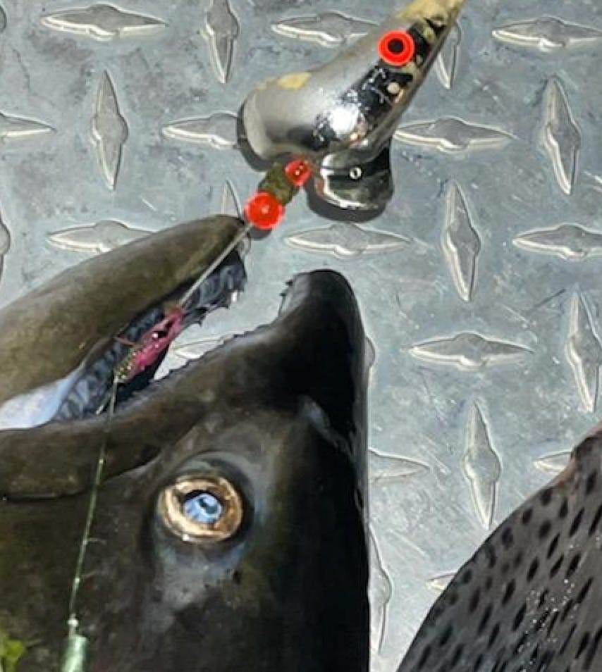 These lures are attractive to both Sockeye and Chinook, and have hooks large enough, and strong enough to land both.