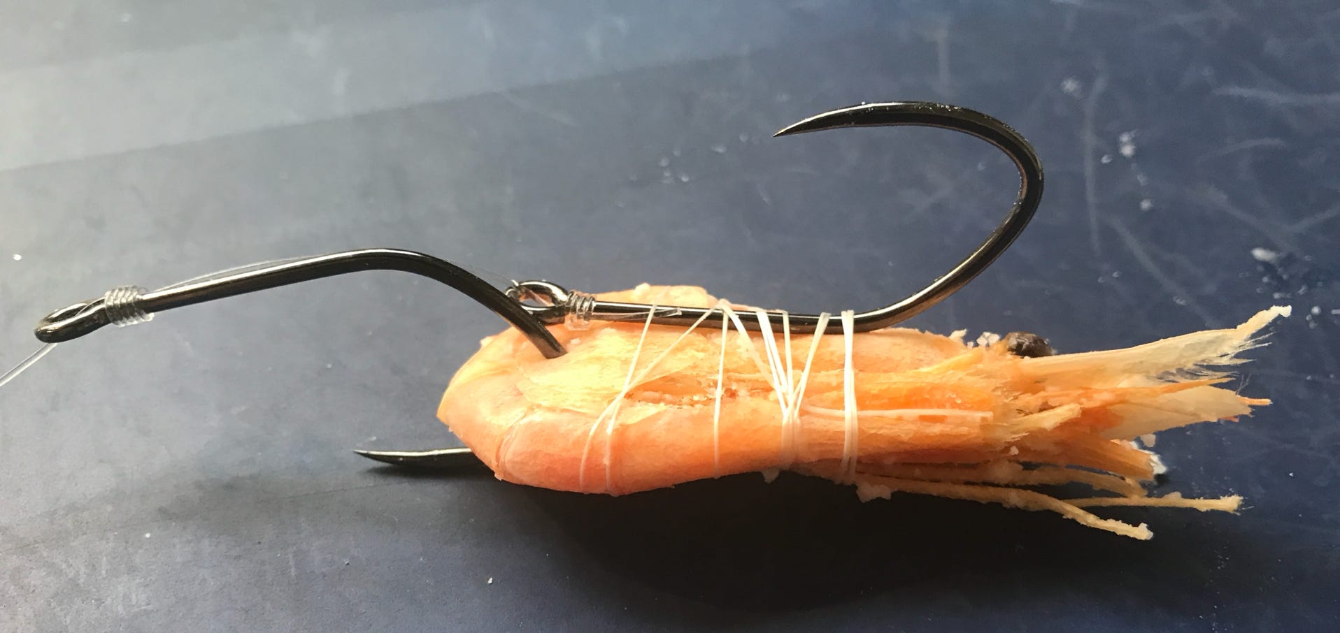 HOW TO ATTACH A SHRIMP TO THE HOOKS: