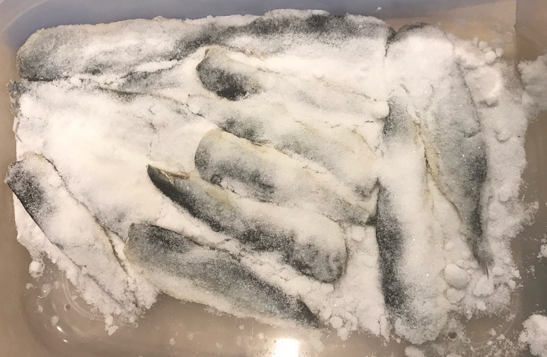 1. Pack sardine, anchovy, herring, or tuna belly fillets in non-iodized sea salt to make them firm.