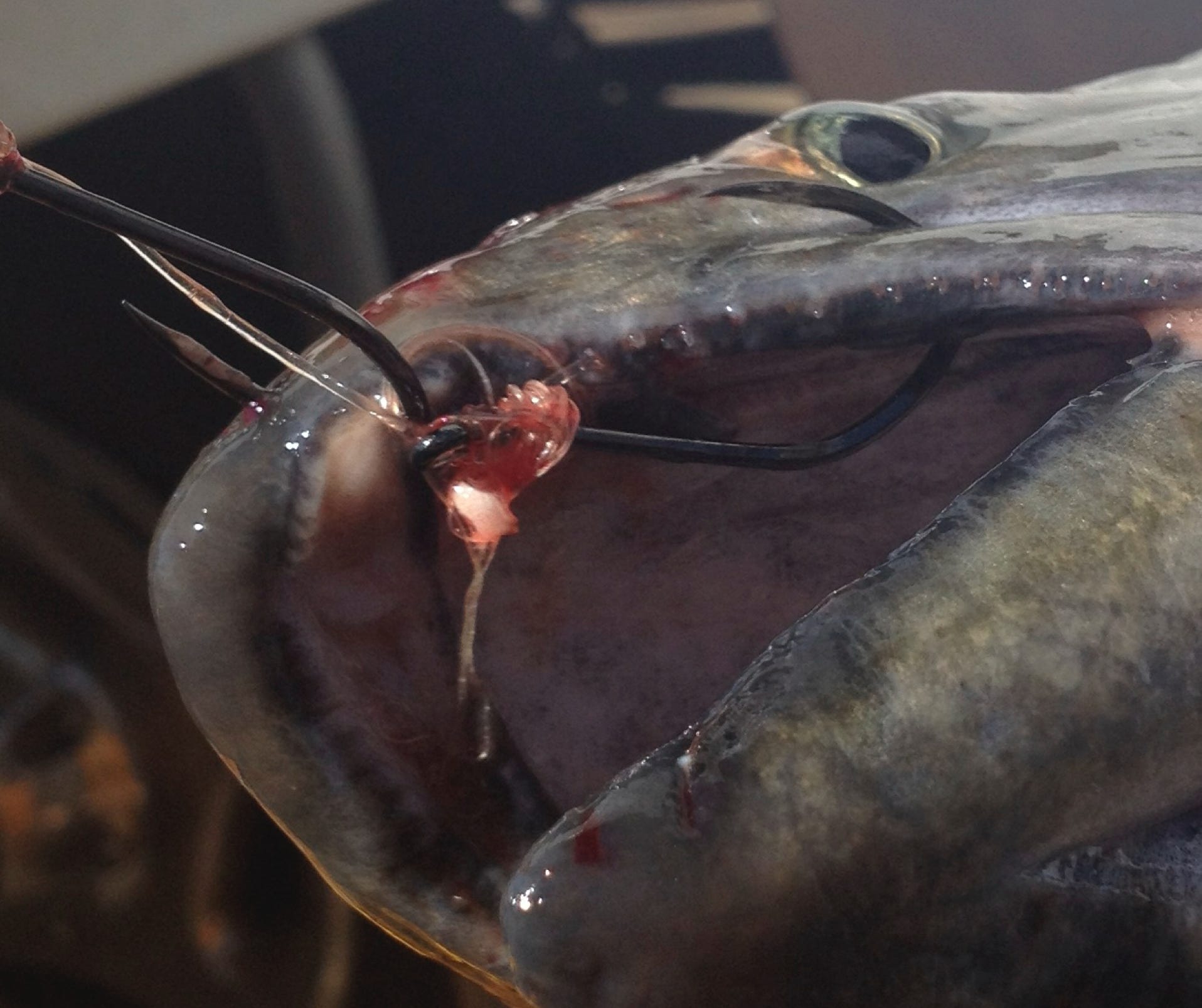 This offset hook configuration results in hookups with both hooks in the fish an amazing 75-80% of the time!