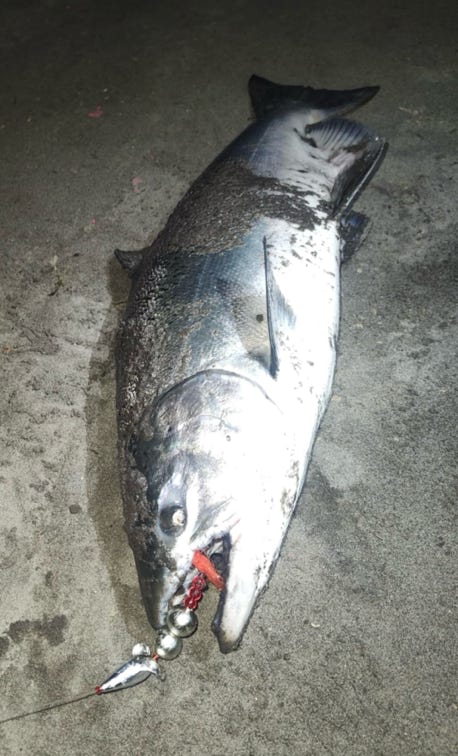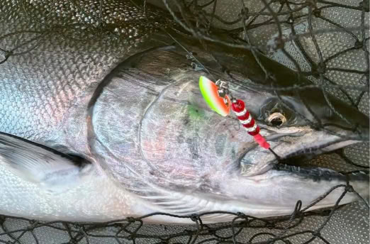 Cole Vercetti sent me a picture of a nice Chinook he caught on the Top Prop plunking and trolling lure at 1:30 AM!