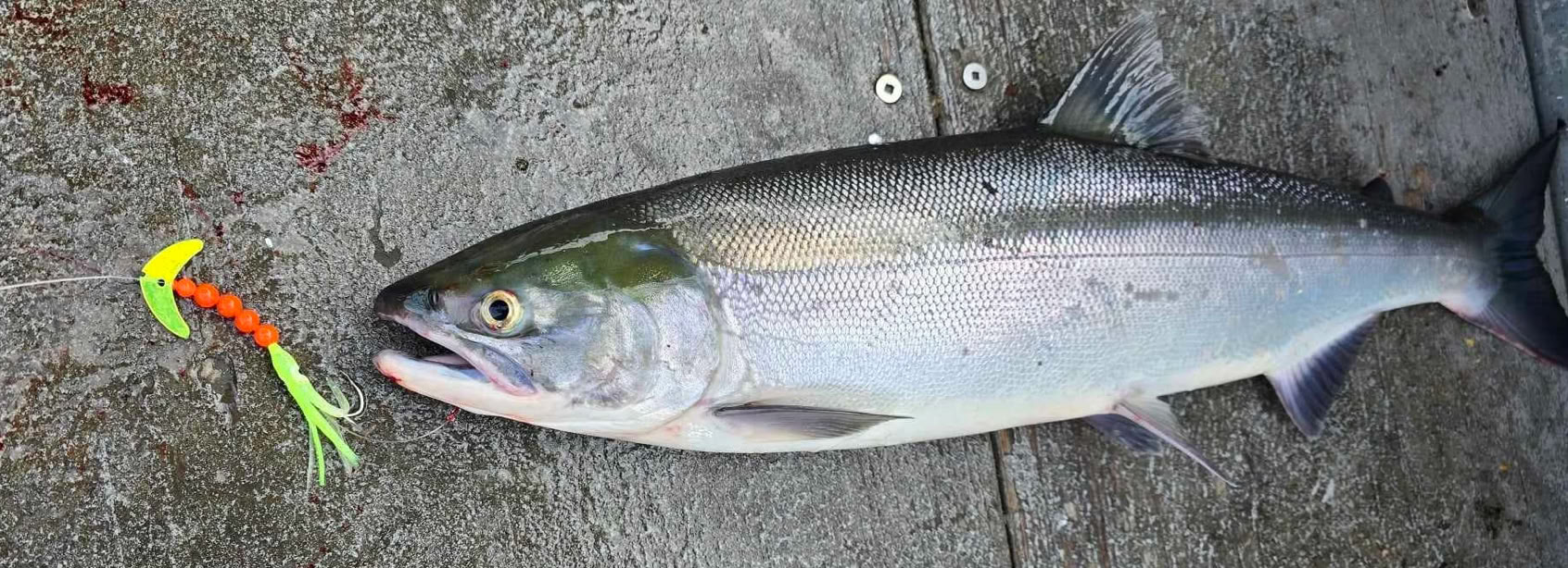 These lures are attractive to both Sockeye and Chinook, and have hooks large enough, and strong enough to land both.