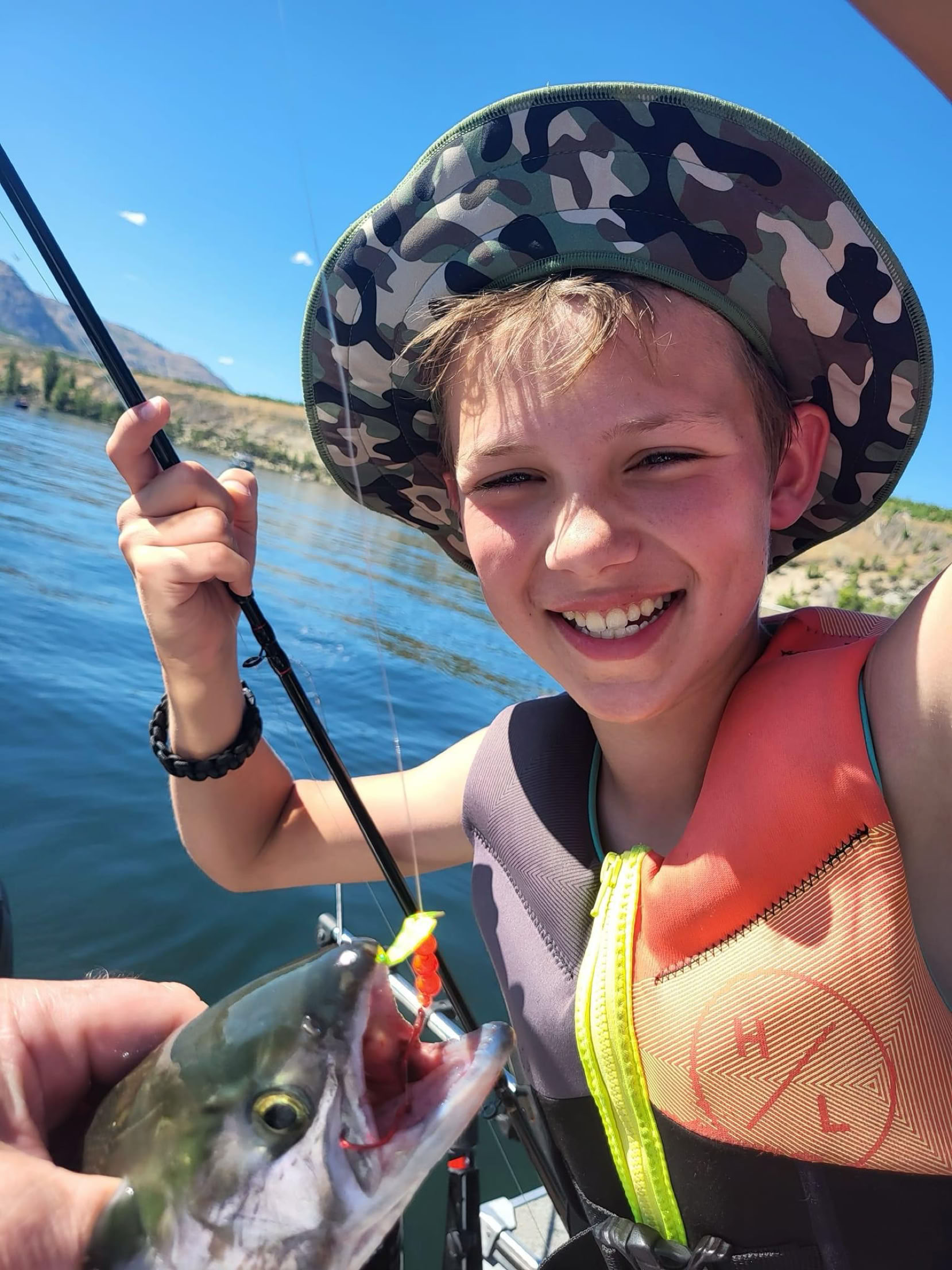 During the 2023 Brewster Pool salmon season, we tested several lure designs and here is the winning lure. I call it Xander’s Sockeye Special, named after ten year old Xander Black, who did most of the testing for me, and absolutely slayed the Sockeye (see below).