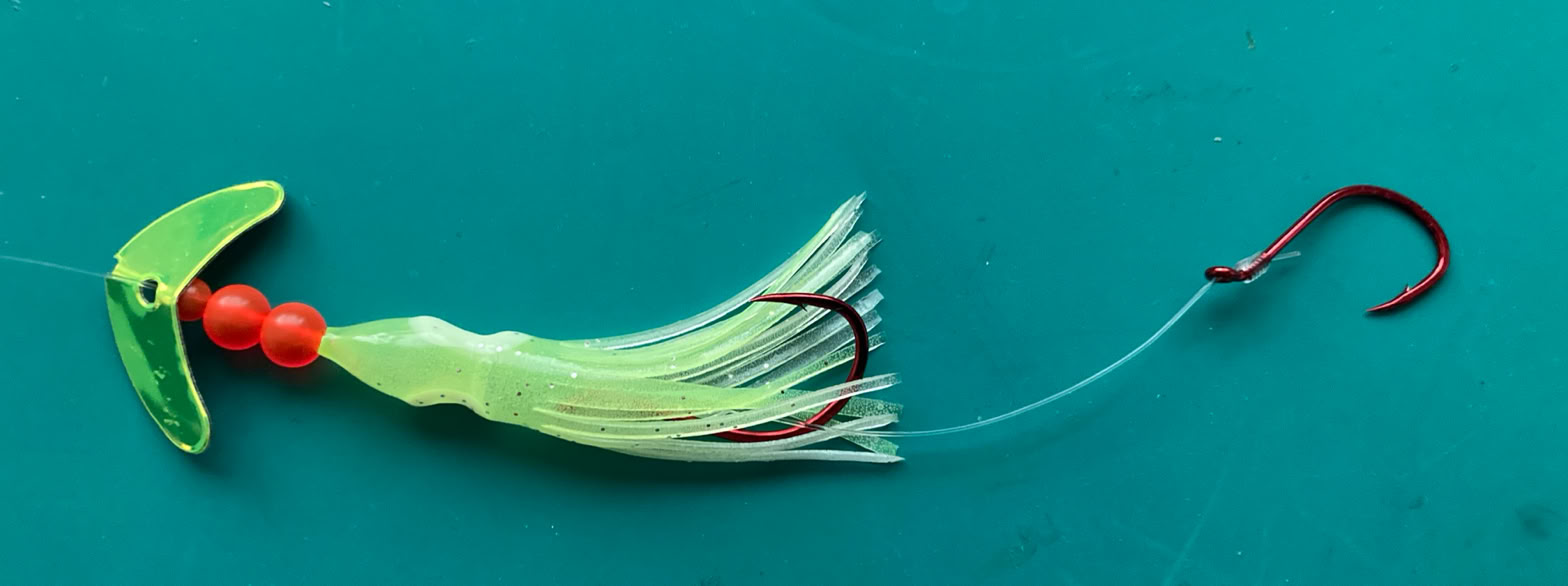 The Xander’s Sockeye Special is a proven Sockeye killer. Guides regularly report that his lure catches larger fish than any other lure. Place a small piece of shrimp on the top hook.